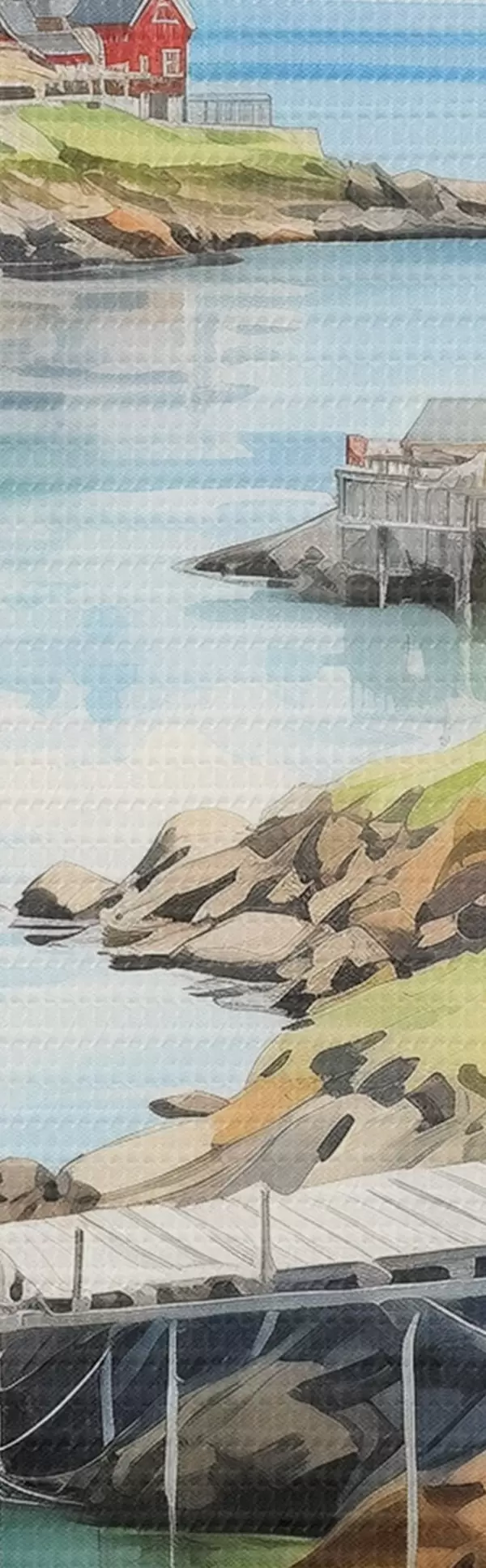 murales de pared Noruega naturaleza, islas Lofoten, paisaje de verano, casas rojas, montañas, barcos m00421