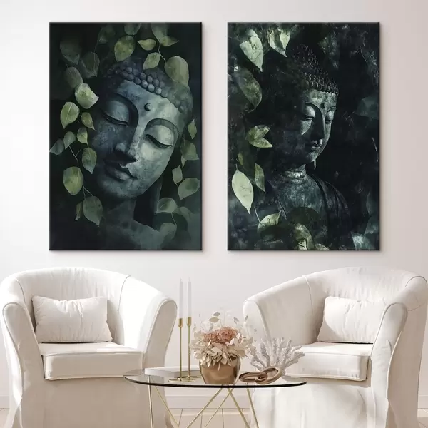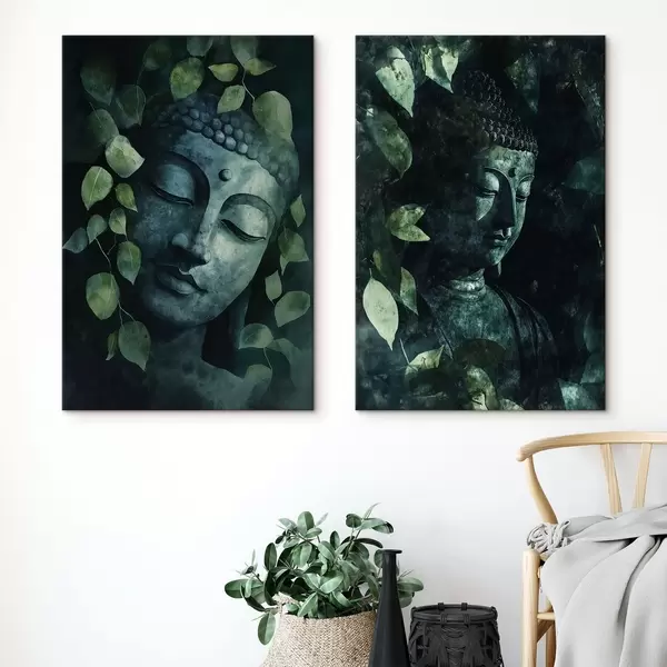 Cuadros Buda verde en hojas tropicales, estilo acuarela Nr m00451