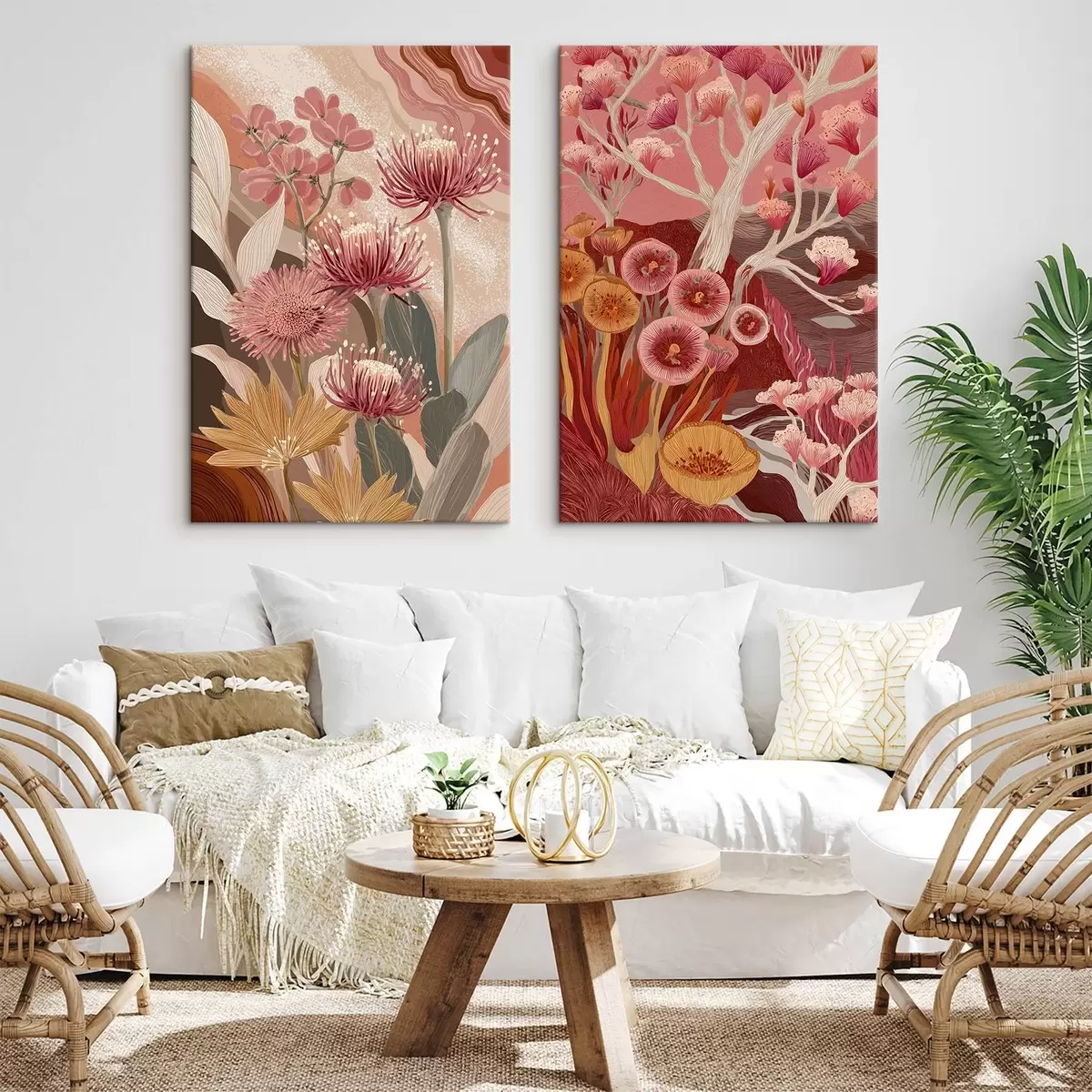 Cuadros Flores de estilo boho, dibujo detallado, colores burdeos Nr m00476