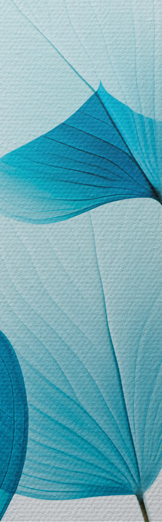 murales de pared Rama con hojas azul translúcido, delicadas venas visibles, composición ligera y tranquila, estética minimalista m00522