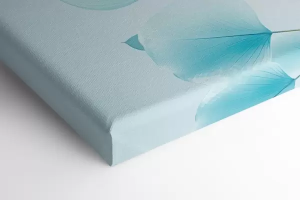 Cuadros Rama con hojas azul translúcido, delicadas venas visibles, composición ligera y tranquila, estética minimalista Nr m00522