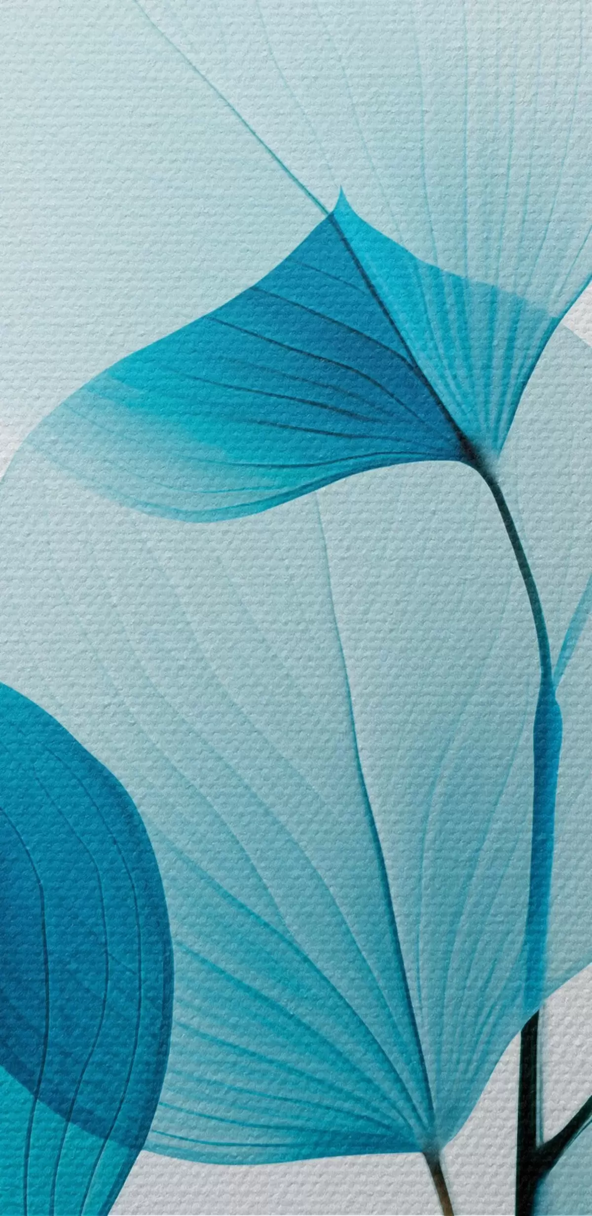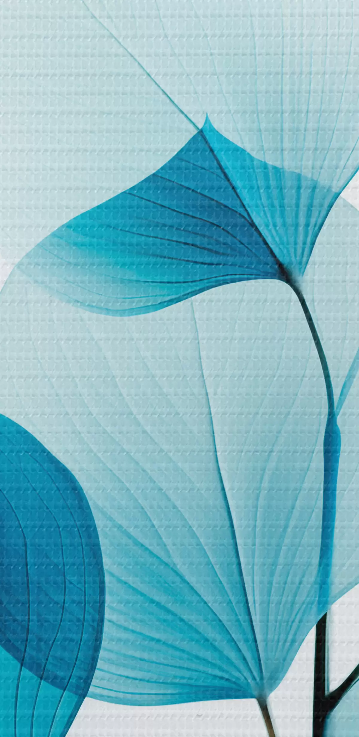 murales de pared Rama con hojas azul translúcido, delicadas venas visibles, composición ligera y tranquila, estética minimalista m00522