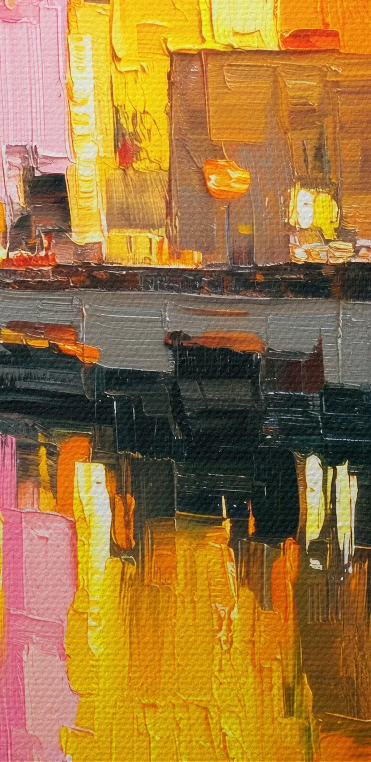 Cuadros Dinámica urbana: composición abstracta con reflejos de luces en el río Nr m00569