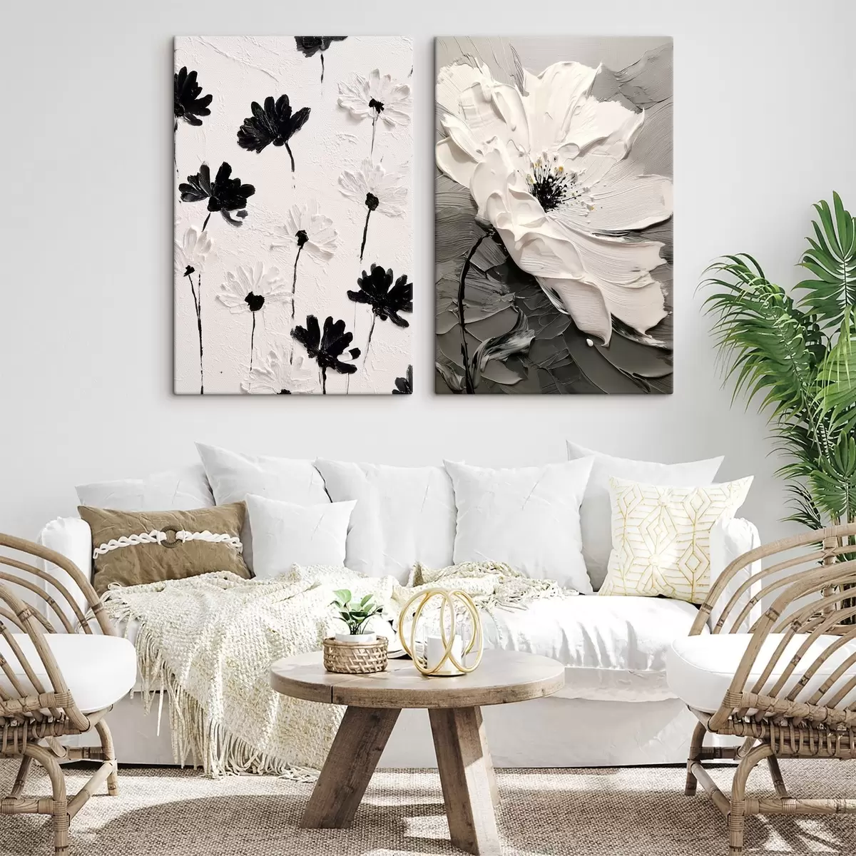 Cuadros Díptico de flores blancas y negras de estilo moderno Nr m00571
