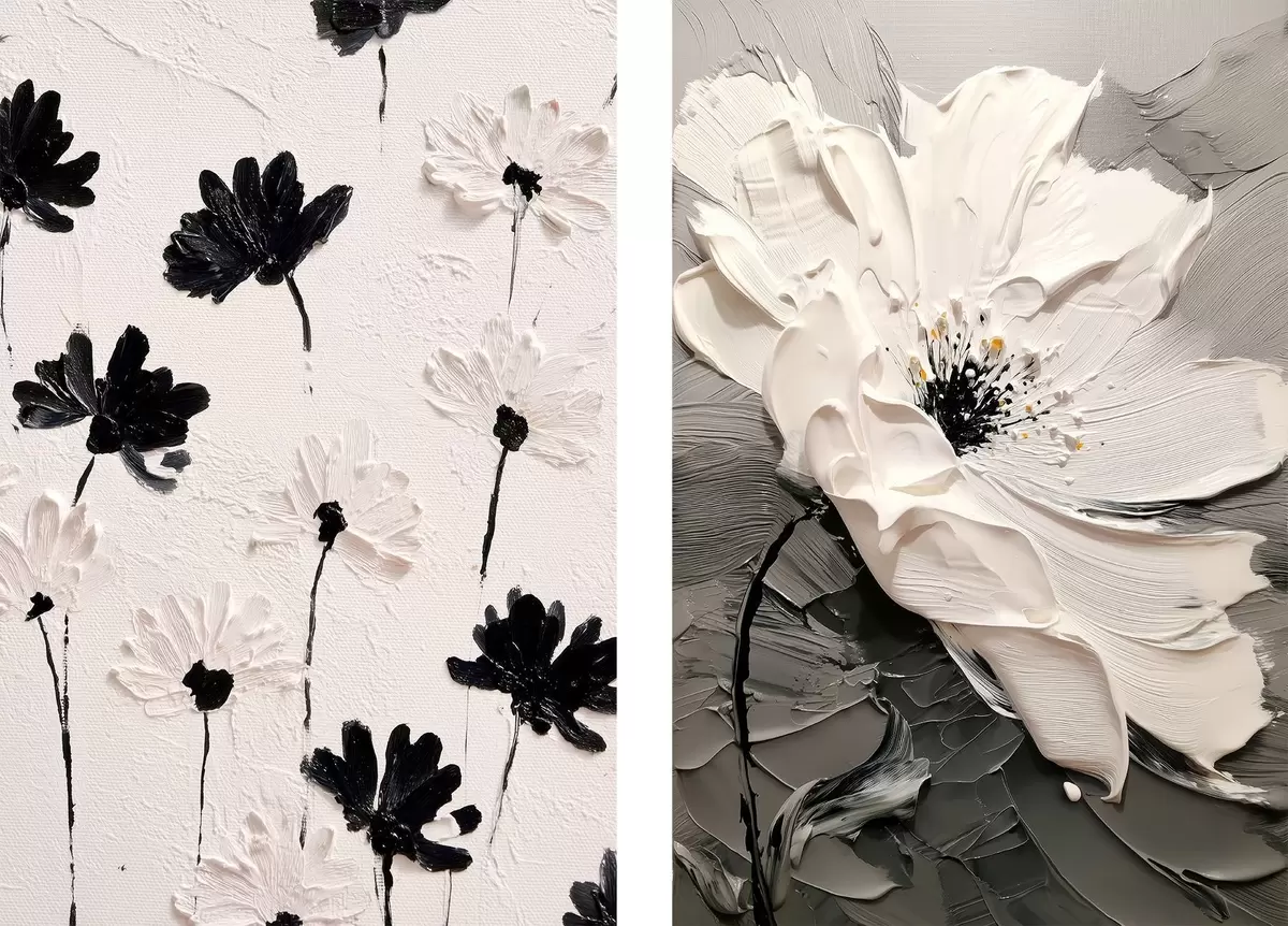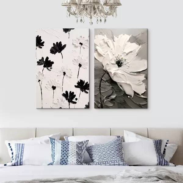 murales de pared Díptico de flores blancas y negras de estilo moderno m00571