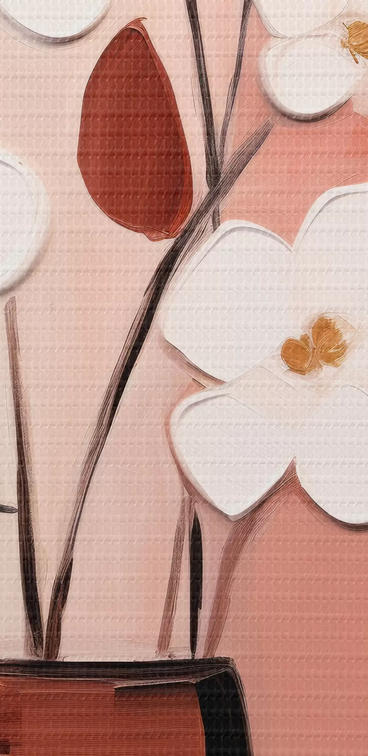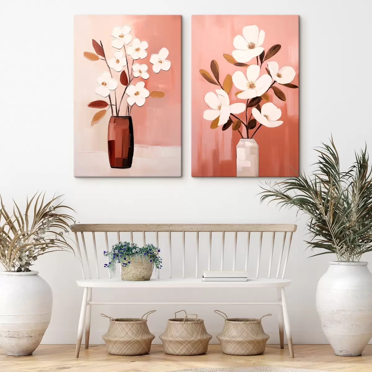 murales de pared Composición con jarrones contrastados y flores blancas texturizadas m00575