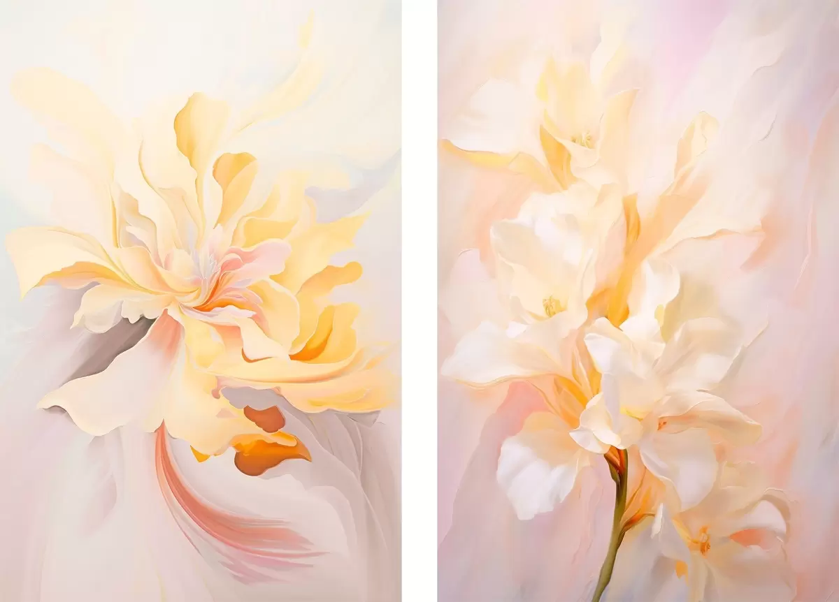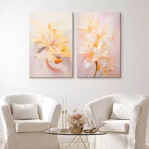 murales de pared Delicado díptico en estilo acuarela con transiciones de color m00576
