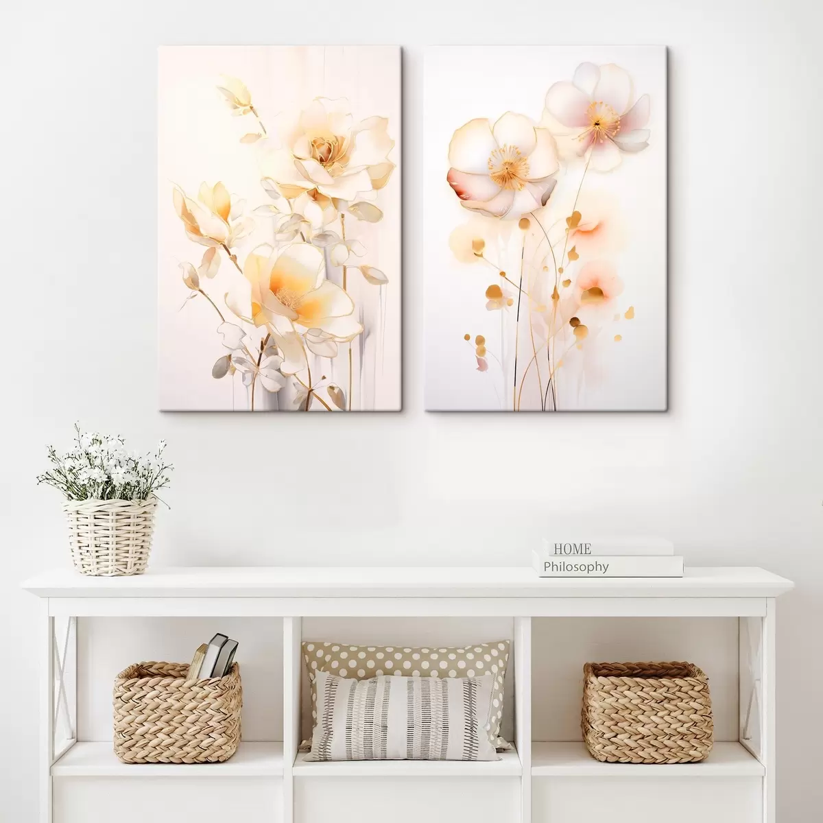 Cuadros Dúo floral: suave díptico en estilo acuarela de líneas elegantes Nr m00577