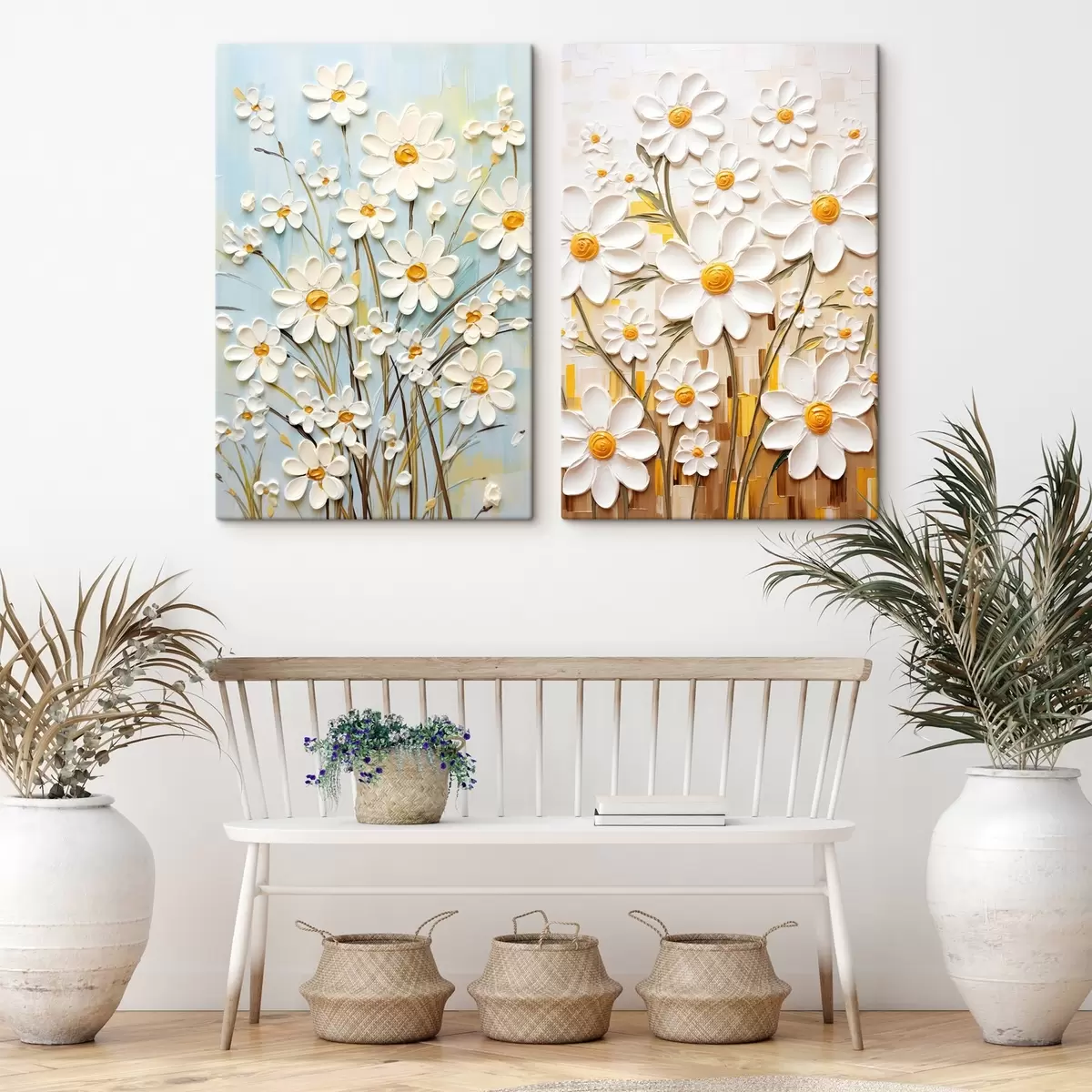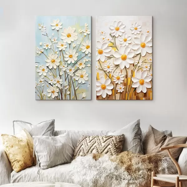 Cuadros Flores soleadas: dúo artístico con margaritas volumétricas y toques amarillos Nr m00580