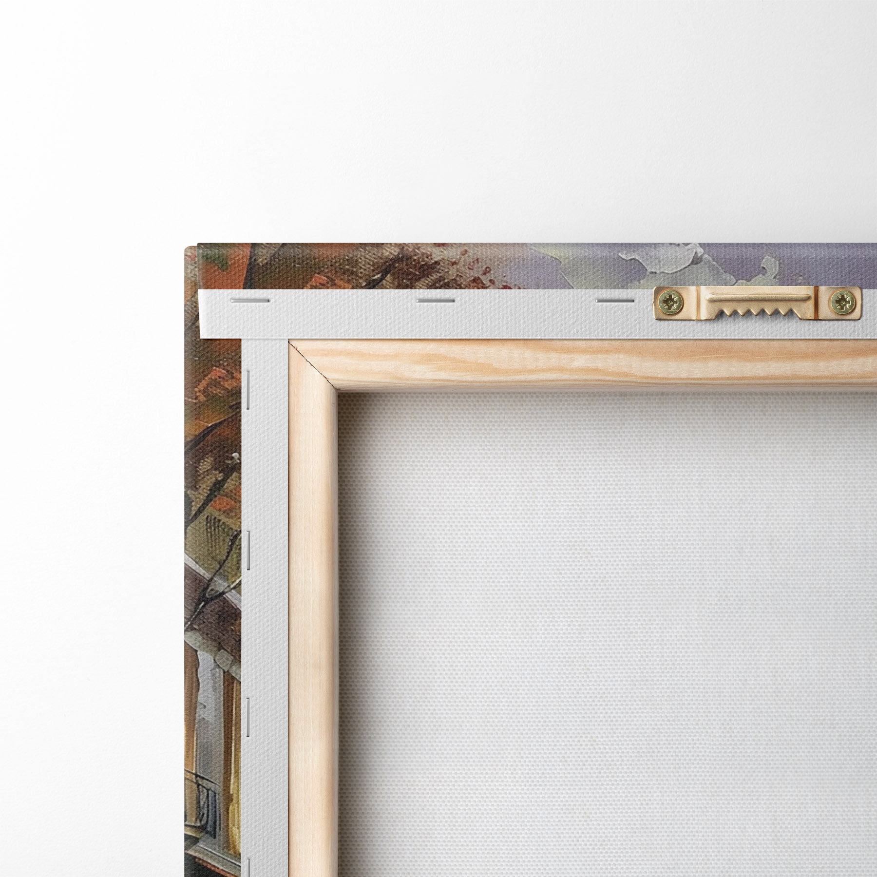 Vendemos cuadros en bastidor: se trata de un marco de madera sobre el que se extiende el lienzo. Este cuadro no necesita marco; puedes colgarlo directamente en la pared.