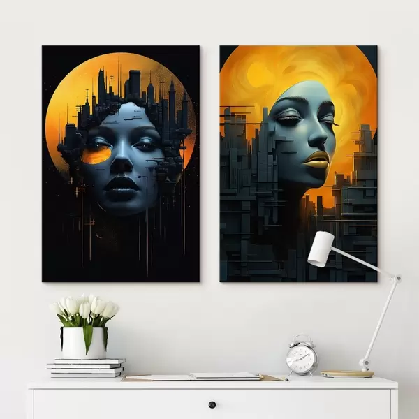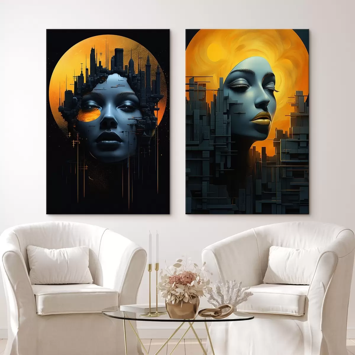 Cuadros Retrato de niña sobre fondo abstracto de ciudad Nr m00618