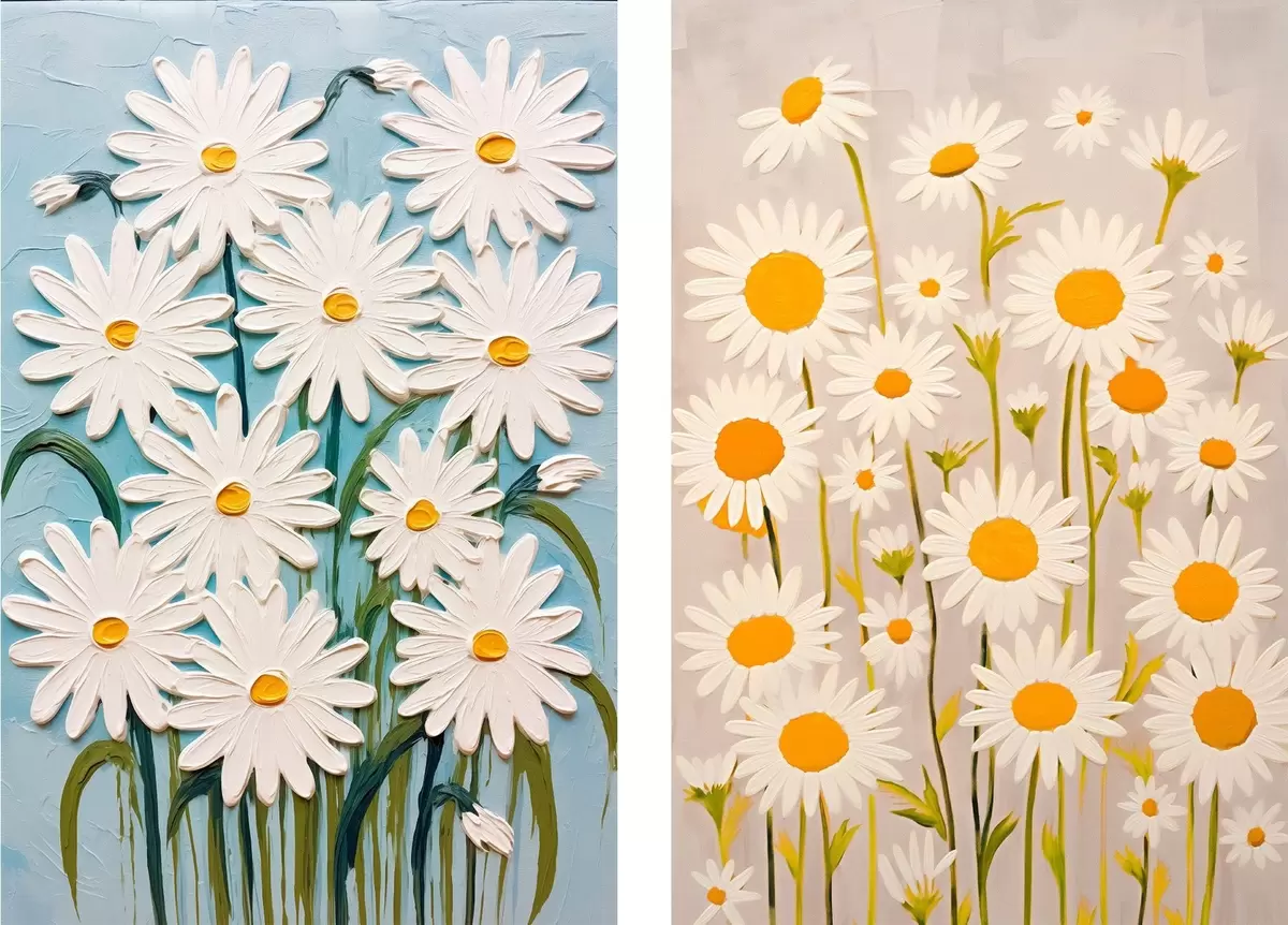 Cuadros Frescor primaveral: díptico con voluminosas margaritas en estilo empastado Nr m00633