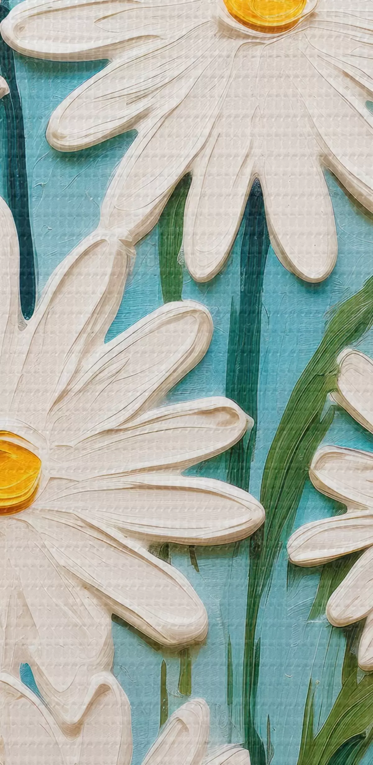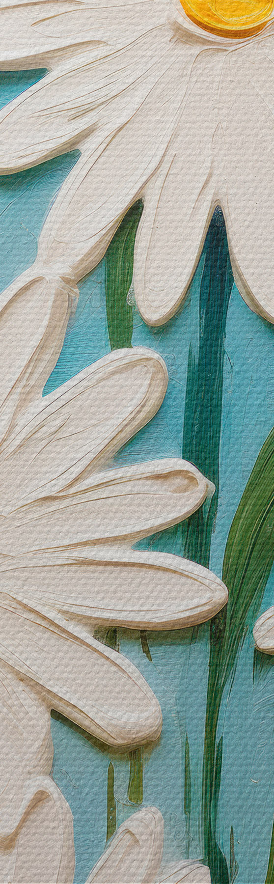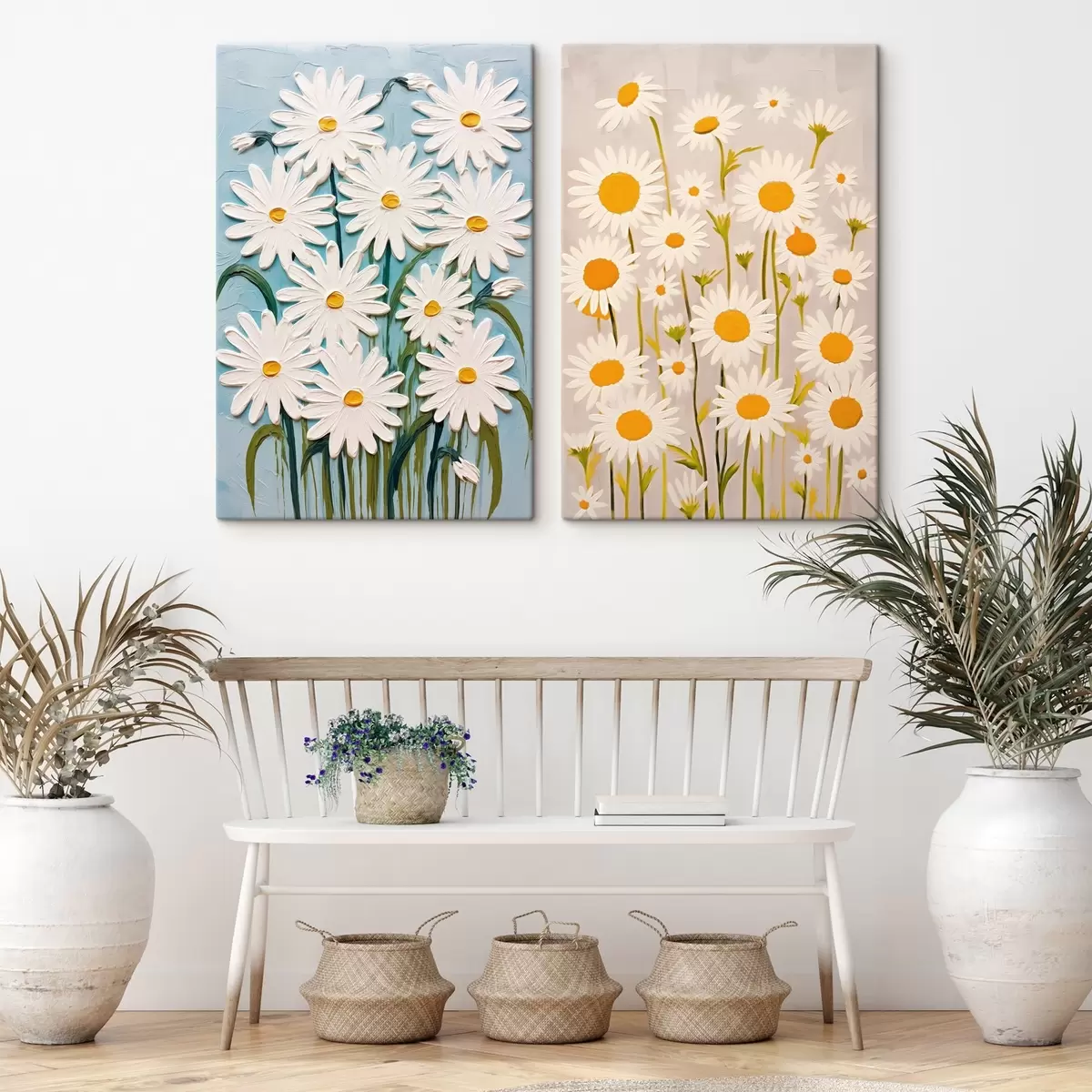 murales de pared Frescor primaveral: díptico con voluminosas margaritas en estilo empastado m00633