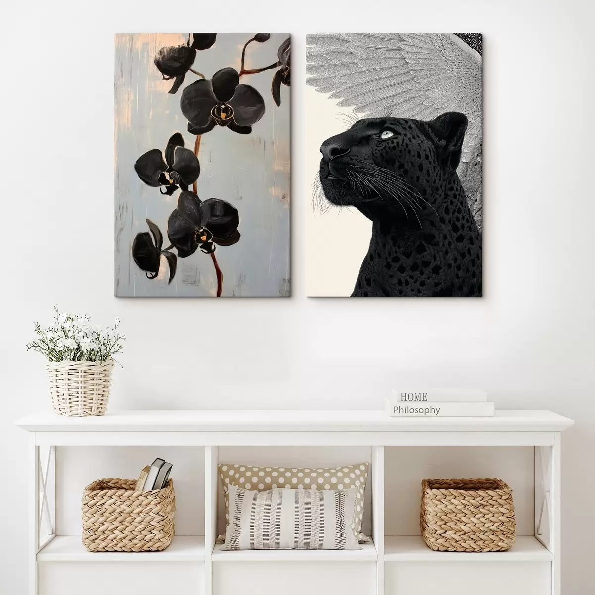 Cuadros Orquídeas oscuras y bestia alada: composición artística Nr m00640