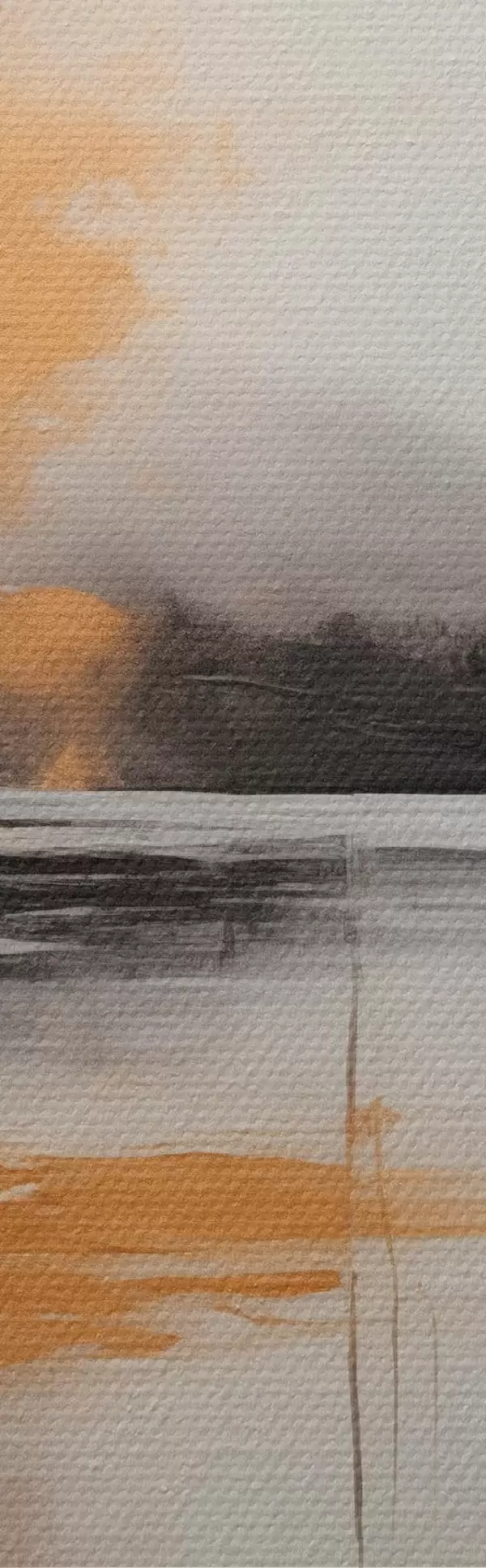 Cuadros Un paisaje abstracto con un lago, un árbol y niebla amarilla , el agua se refleja y el cielo nublado Nr m00657