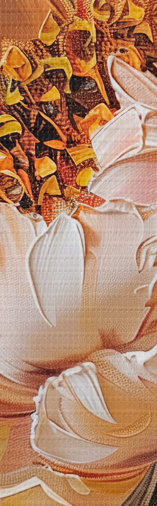 Hay tres tipos de material disponibles para pedidos: Lienzo Económico - material denso y duradero para impresión digital, idéntico al lienzo de pintor, superficie impermeable, reproducción realista de los detalles, material de grano medio. Lienzo Premium - la textura se asemeja a la de un lienzo de pintor (pequeños hilos entrelazados). Reproducción suave y detallada de la imagen sobre una superficie mate. Eco-Premium - tejido 100% algodón de alta calidad. Gracias a las fibras naturales de algodón, el material es duradero y resistente al desgaste. Excelente reproducción del color y el detalle.