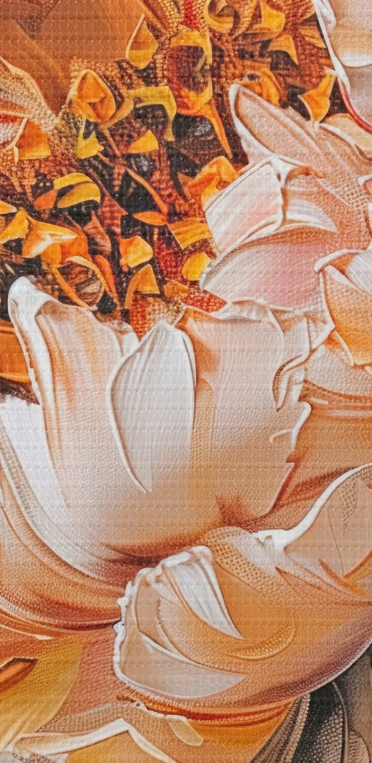 Hay tres tipos de material disponibles para pedidos: Lienzo Económico - material denso y duradero para impresión digital, idéntico al lienzo de pintor, superficie impermeable, reproducción realista de los detalles, material de grano medio. Lienzo Premium - la textura se asemeja a la de un lienzo de pintor (pequeños hilos entrelazados). Reproducción suave y detallada de la imagen sobre una superficie mate. Eco-Premium - tejido 100% algodón de alta calidad. Gracias a las fibras naturales de algodón, el material es duradero y resistente al desgaste. Excelente reproducción del color y el detalle.