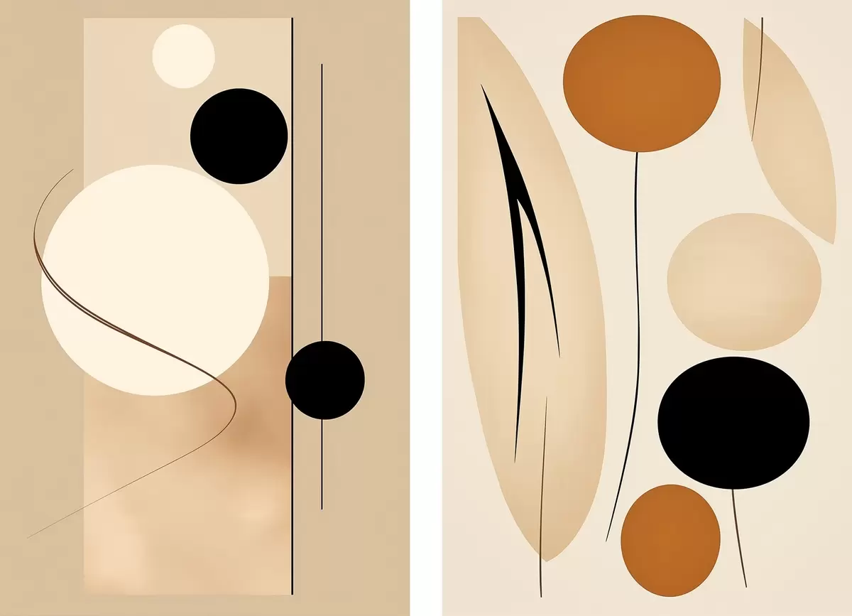murales de pared Círculos geométricos minimalistas en tonos beige y negro m00685