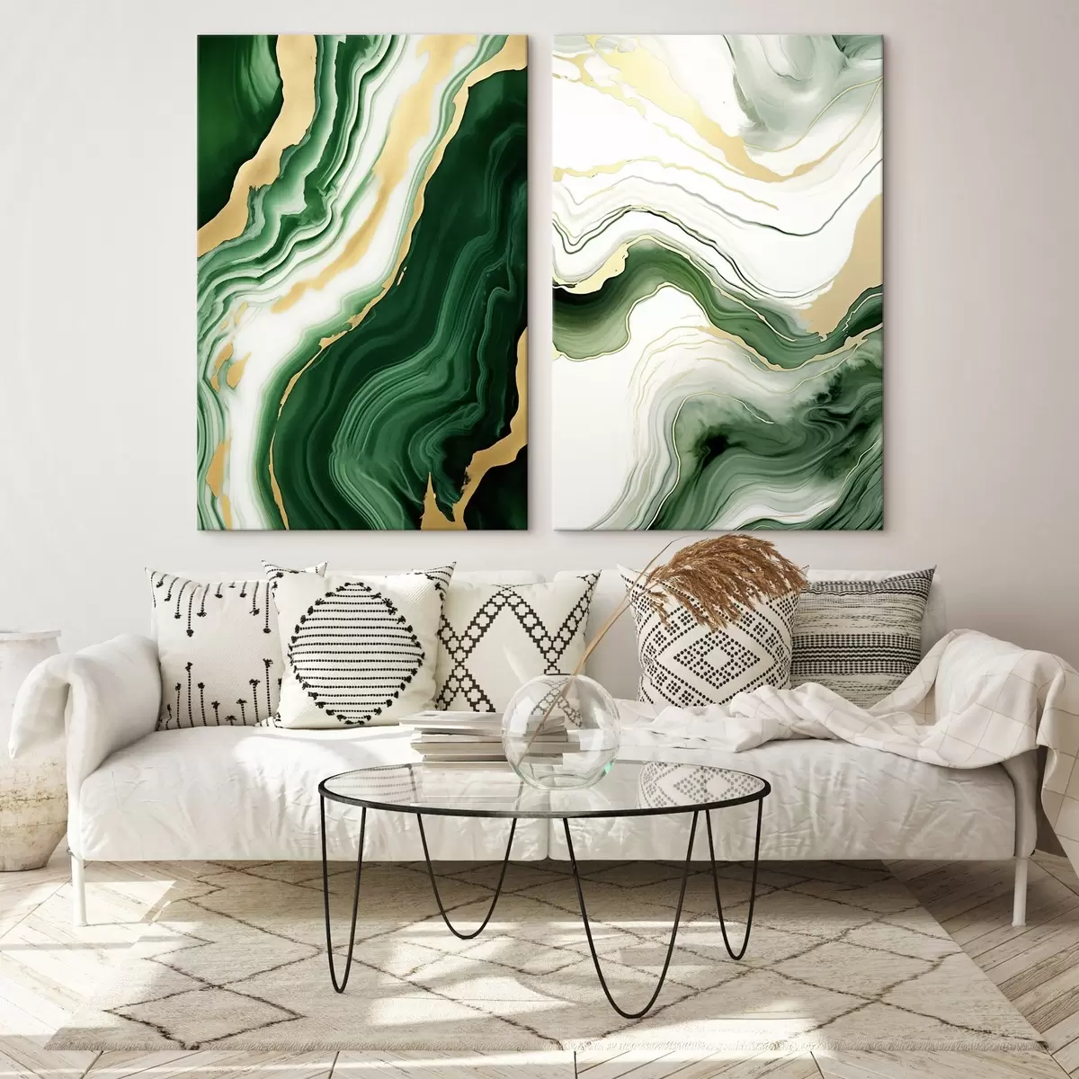 Cuadros Texturas de mármol verde y blanco con vetas amarillo anaranjadas Nr m00688