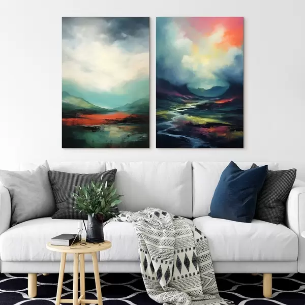 Cuadros Paisaje abstracto con nubes en tonos turquesa y rojo Nr m00691