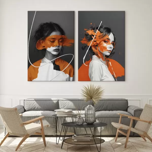 murales de pared Retratos de niñas con pinceladas abstractas de color naranja m00693