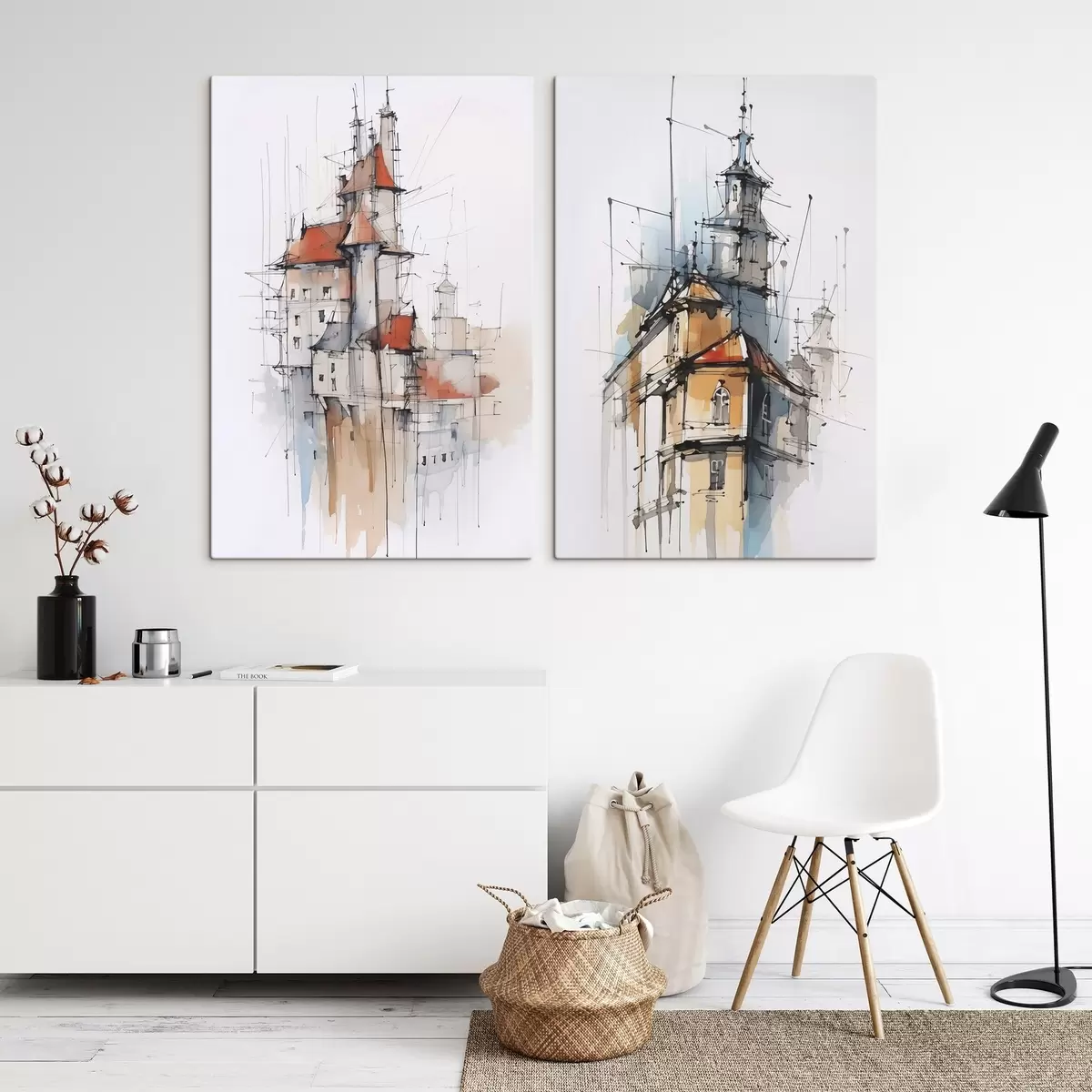 Cuadros Boceto de imitación de casas y acuarela Nr m00725