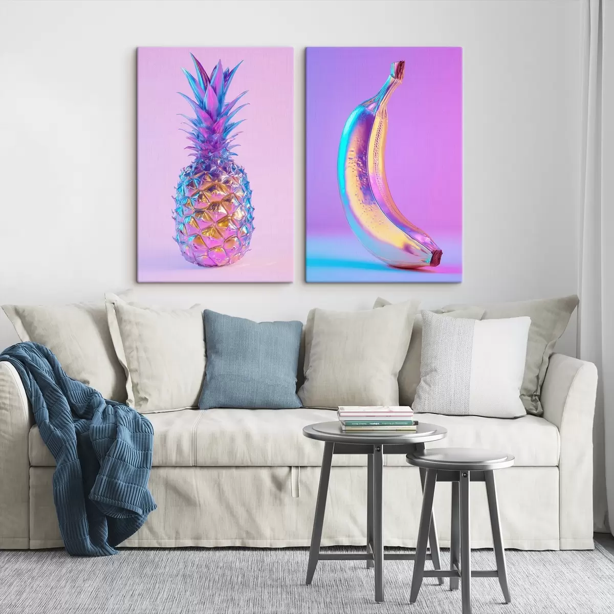 Cuadros piña y plátano brillantes y lustrosos al estilo pop art Nr m00737