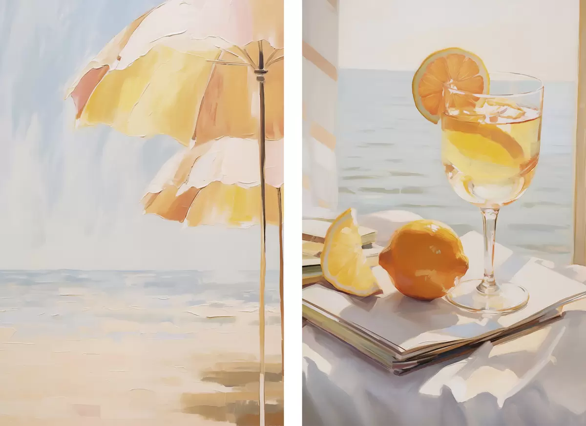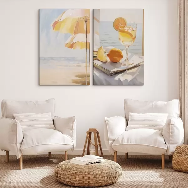 Cuadros Paisaje de playa y cóctel en una copa Nr m00793