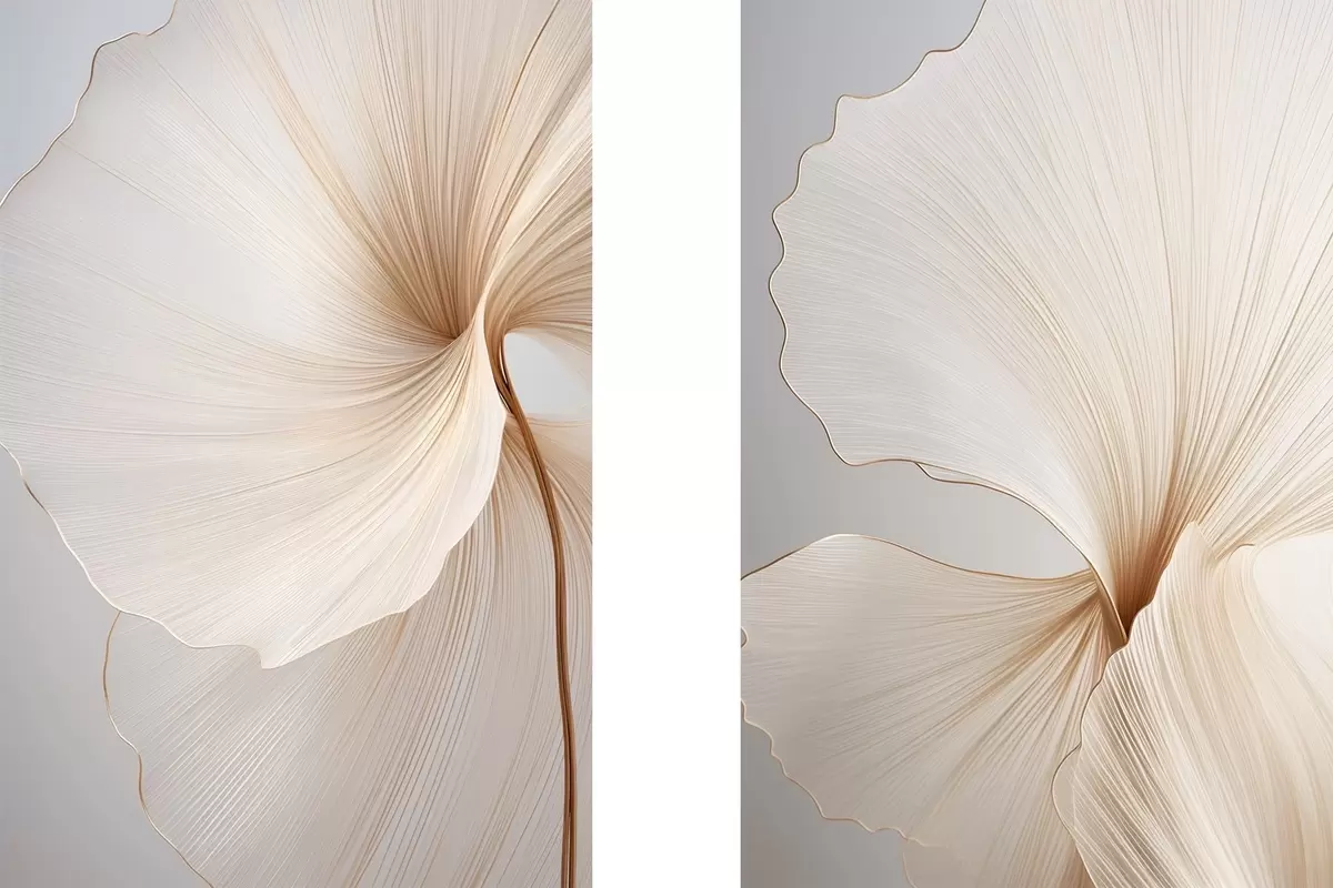 murales de pared Flores abstractas con pétalos finos y delicados en tonos blancos y beige m00817