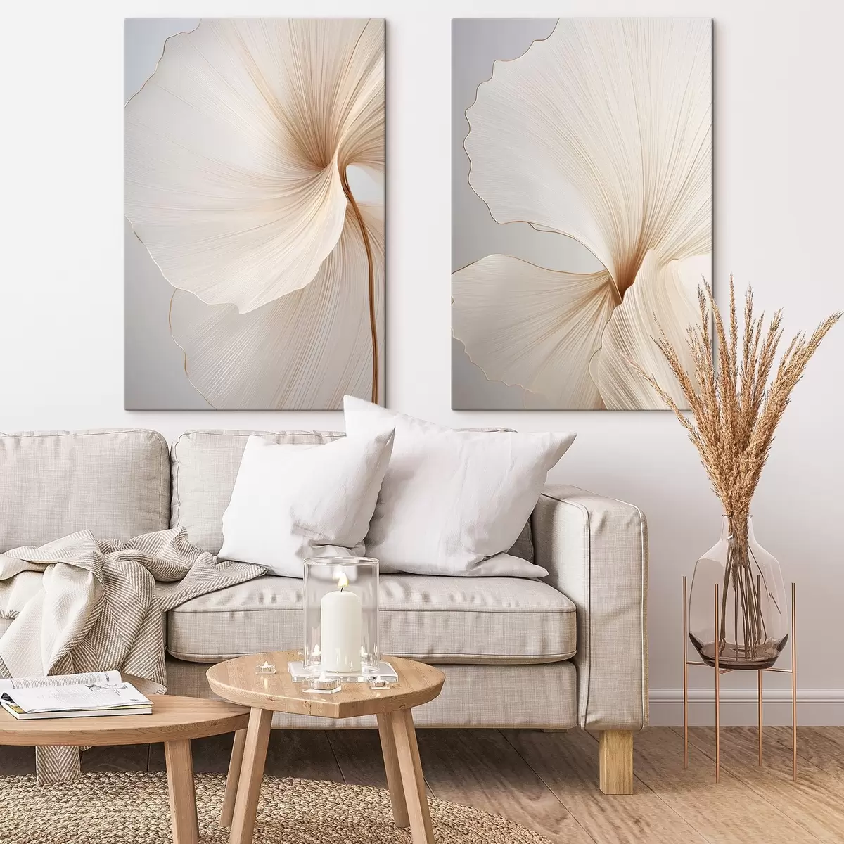 Cuadros Flores abstractas con pétalos finos y delicados en tonos blancos y beige Nr m00817