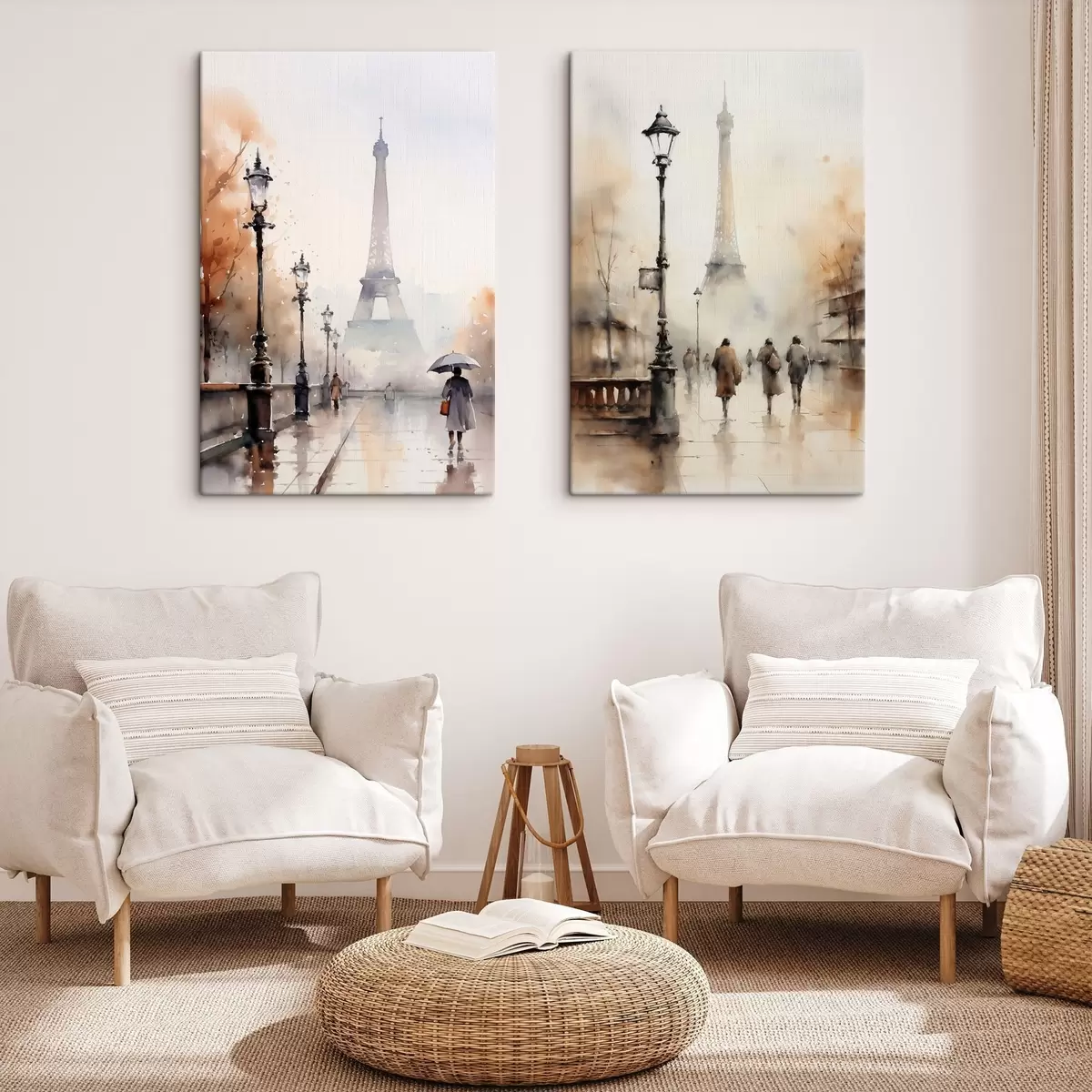 Cuadros Un lluvioso día de otoño en París con la Torre Eiffel al fondo y farolas vintage Nr m00821