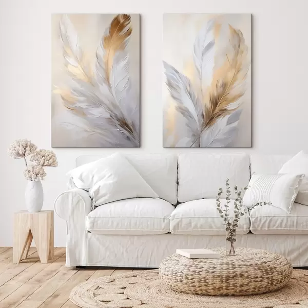 Cuadros Plumas con detalles en naranja, composición minimalista con textura, arte moderno Nr m00828