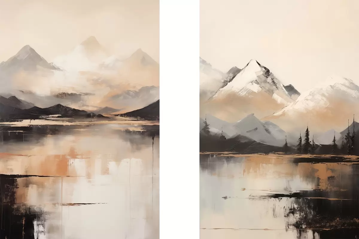Cuadros Una pintura con textura paisajística que imita montañas y un lago Nr m00831