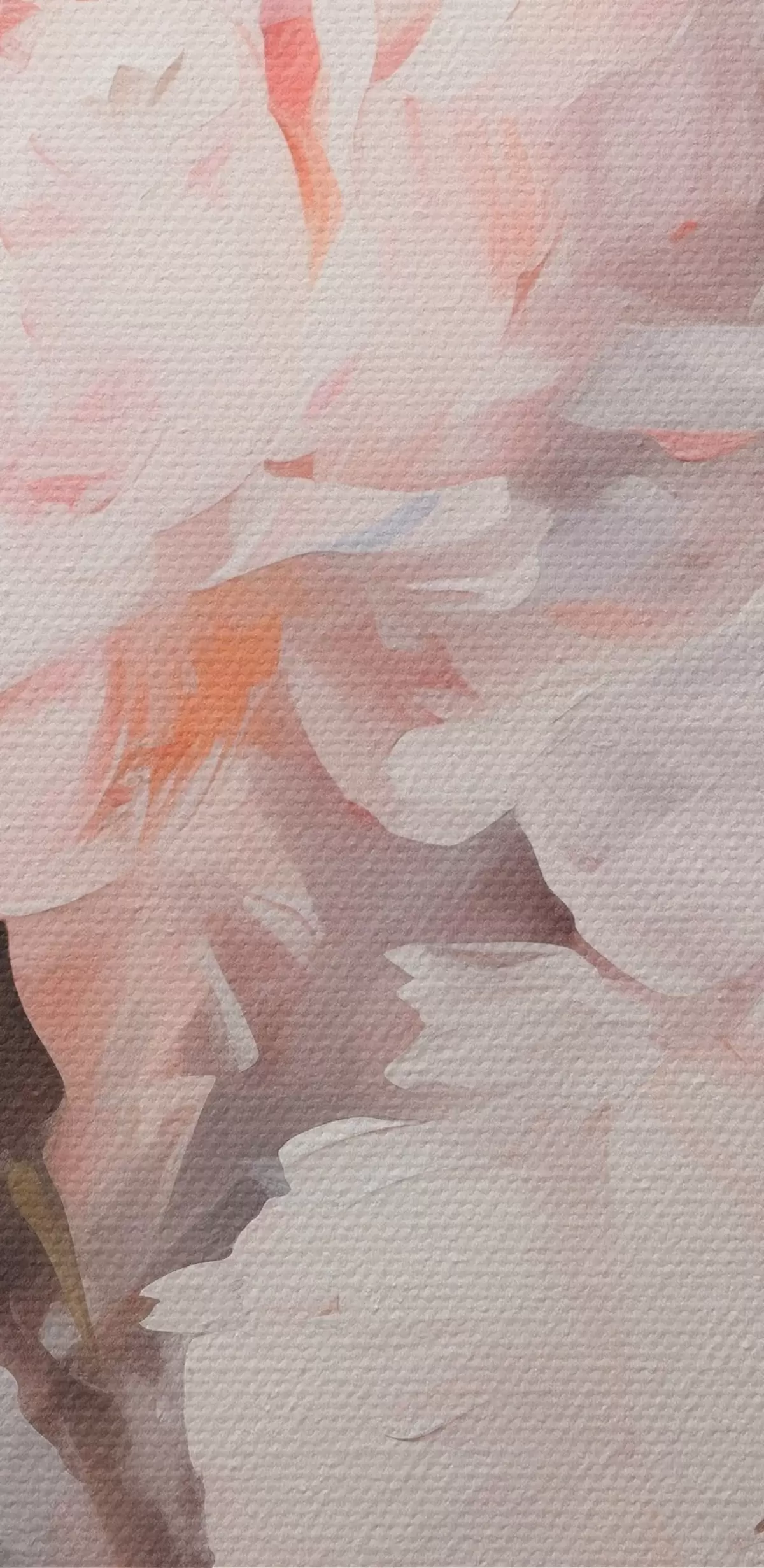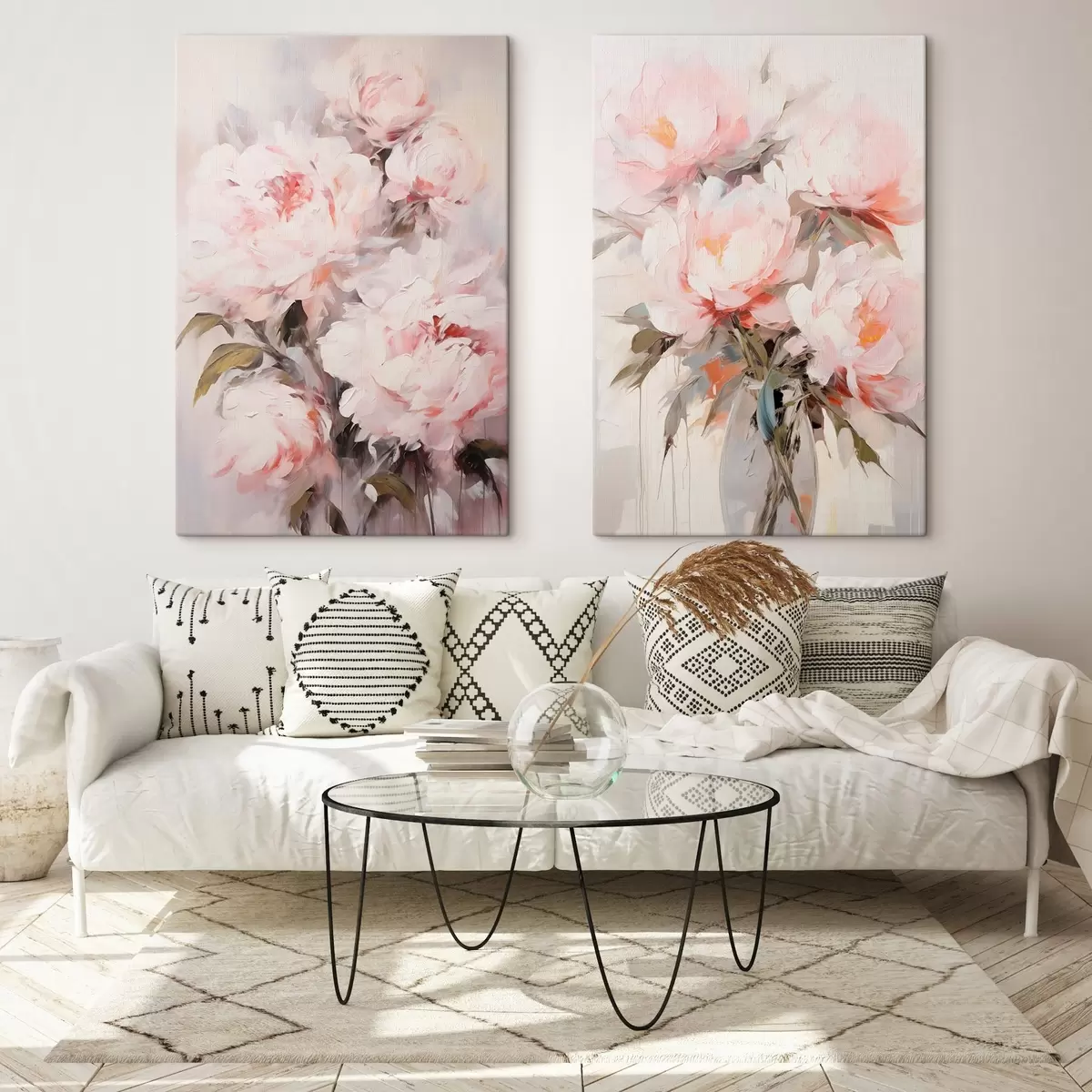 Cuadros Ramo de peonías rosa claro con hojas verdes, pinceladas suaves, colores pastel, sobre un fondo claro. Nr m00890