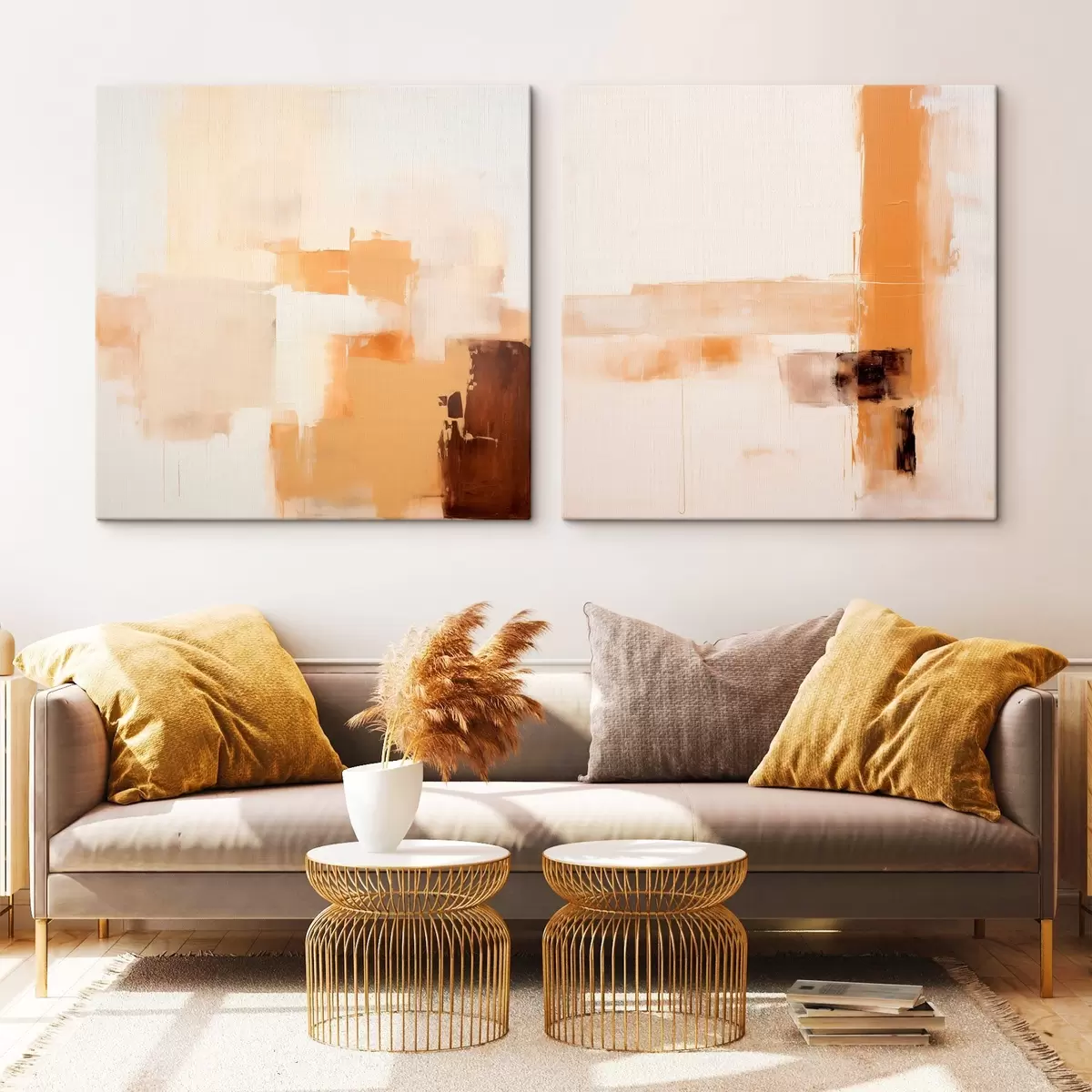 murales de pared Composición abstracta en dos partes en tonos beige y marrón. m00891
