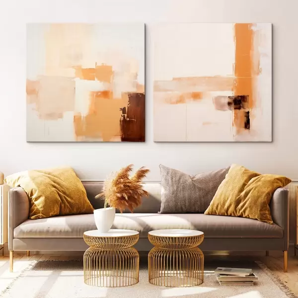 murales de pared Composición abstracta en dos partes en tonos beige y marrón. m00891