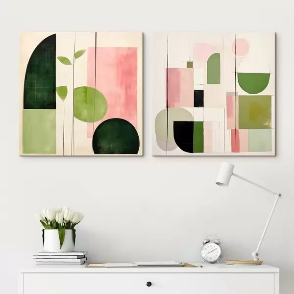 Cuadros Díptico minimalista con motivos florales y geométricos estilizados Nr m00894