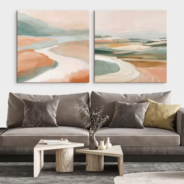 Cuadros Colinas abstractas y río en paleta pastel Nr m00896