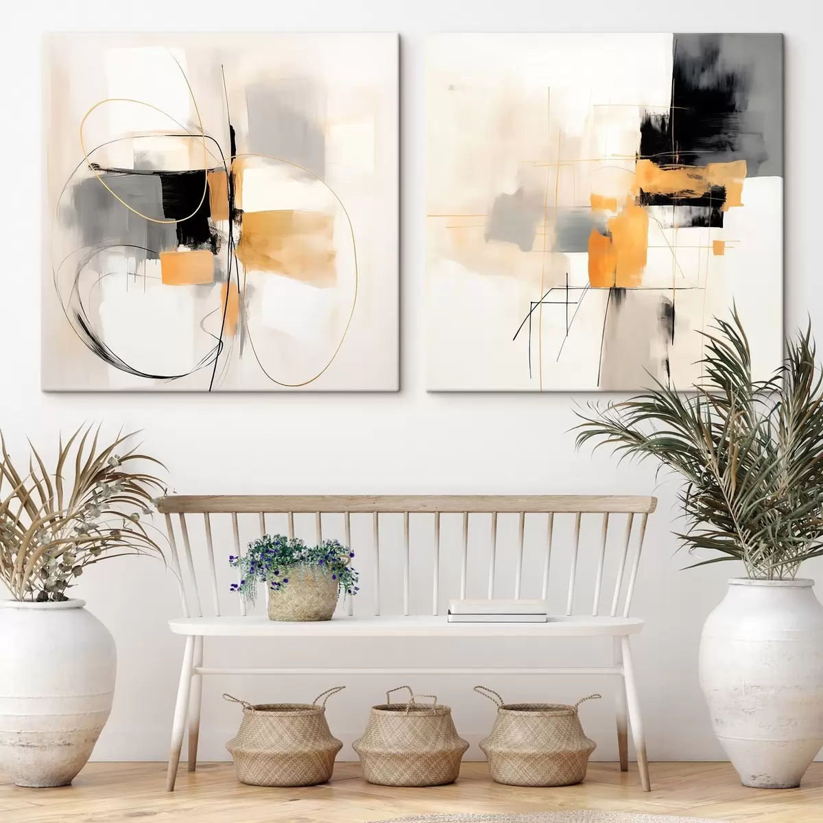 Cuadros Geometría abstracta, ocre, gris y negro. Nr m00899