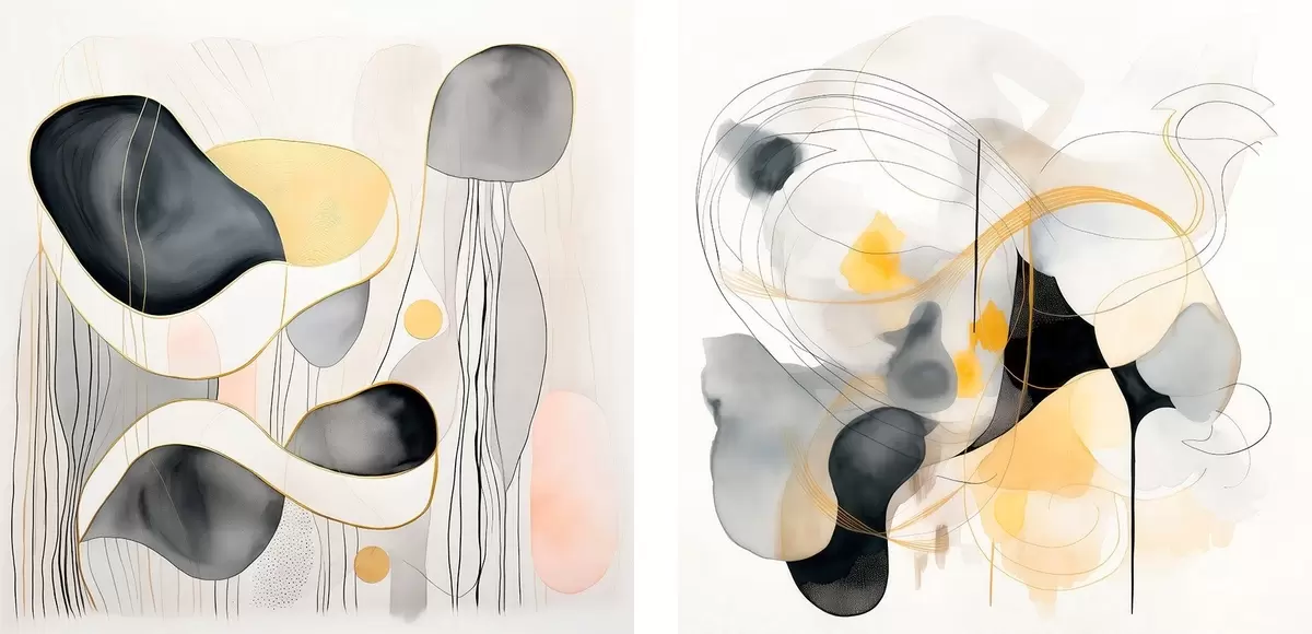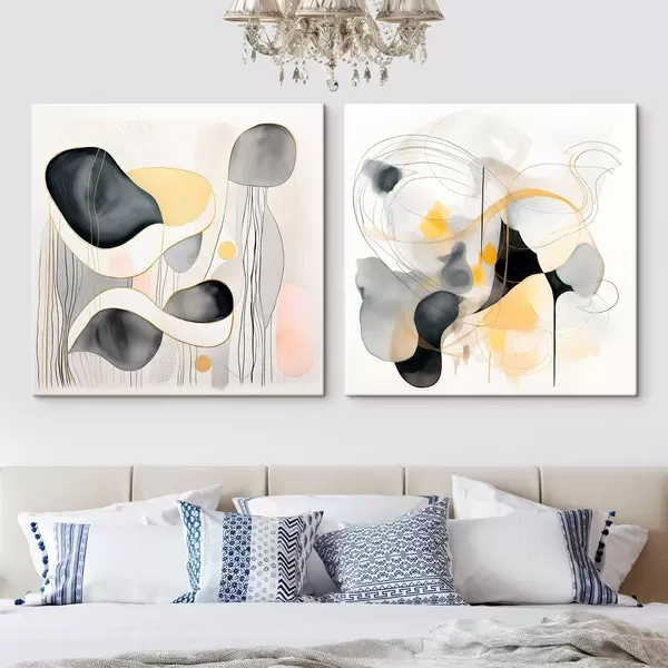 Cuadros Monocromo y acento amarillo en estilo abstracto Nr m00905