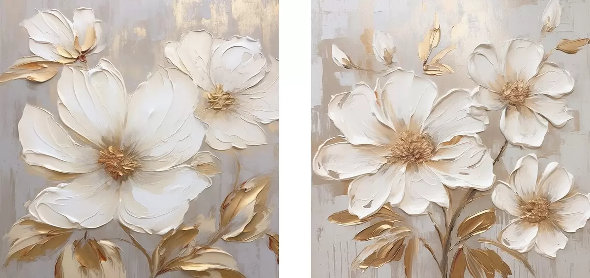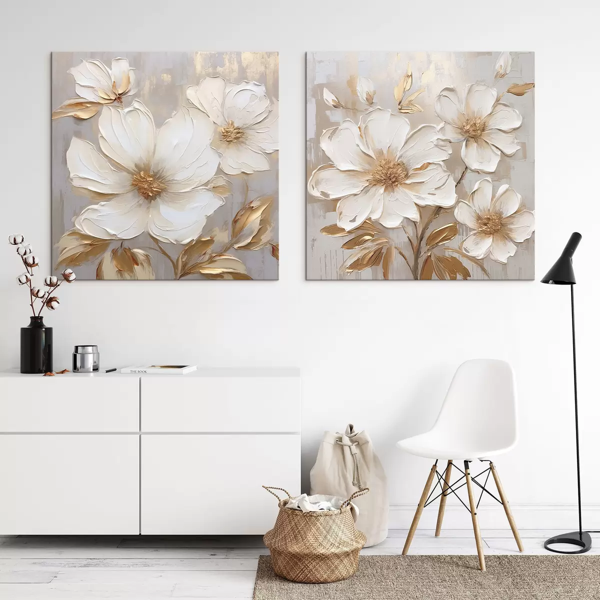 Cuadros Díptico con flores grandes en colores claros y cálidos Nr m00927