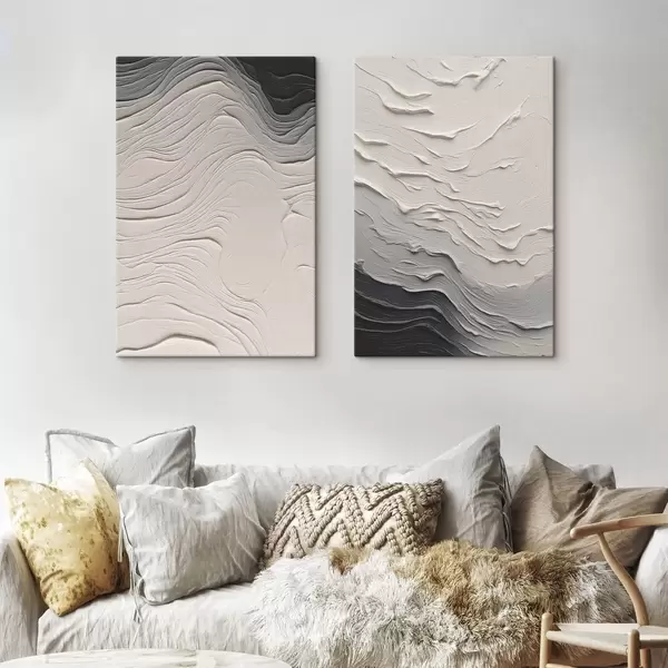Hay tres tipos de material disponibles para pedidos: Lienzo Económico - material denso y duradero para impresión digital, idéntico al lienzo de pintor, superficie impermeable, reproducción realista de los detalles, material de grano medio. Lienzo Premium - la textura se asemeja a la de un lienzo de pintor (pequeños hilos entrelazados). Reproducción suave y detallada de la imagen sobre una superficie mate. Eco-Premium - tejido 100% algodón de alta calidad. Gracias a las fibras naturales de algodón, el material es duradero y resistente al desgaste. Excelente reproducción del color y el detalle.