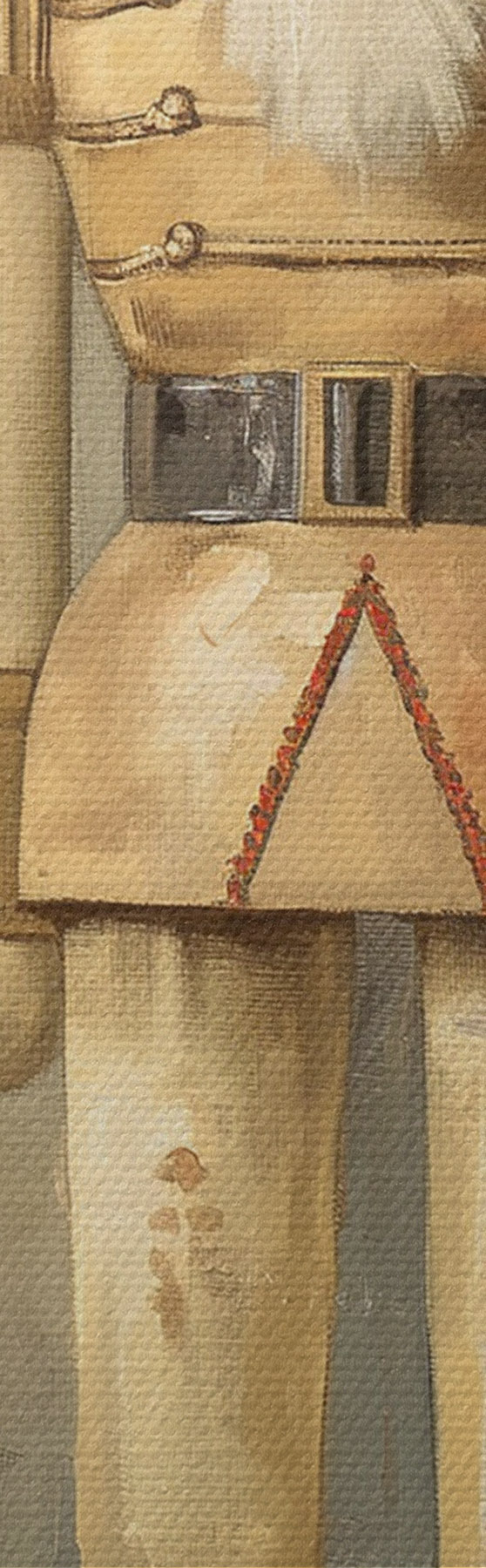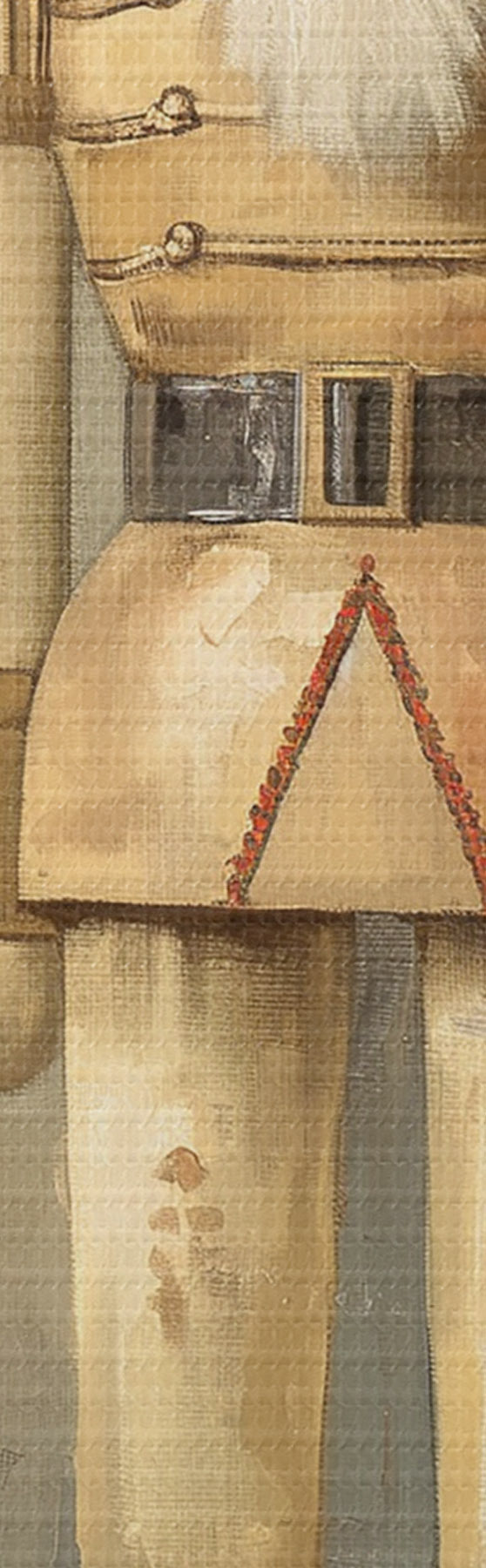 El cuadro puede limpiarse suavemente con un paño suave seco o una esponja; no se recomienda utilizar productos húmedos. El uso de una esponja húmeda sólo está permitido si el cuadro ha sido barnizado.