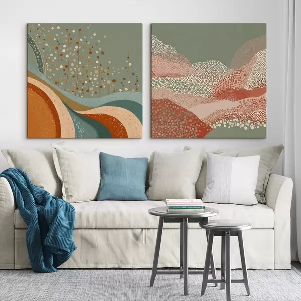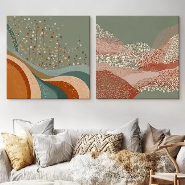 murales de pared Paisaje abstracto en dos partes con elementos punteados y ondulados. m00987