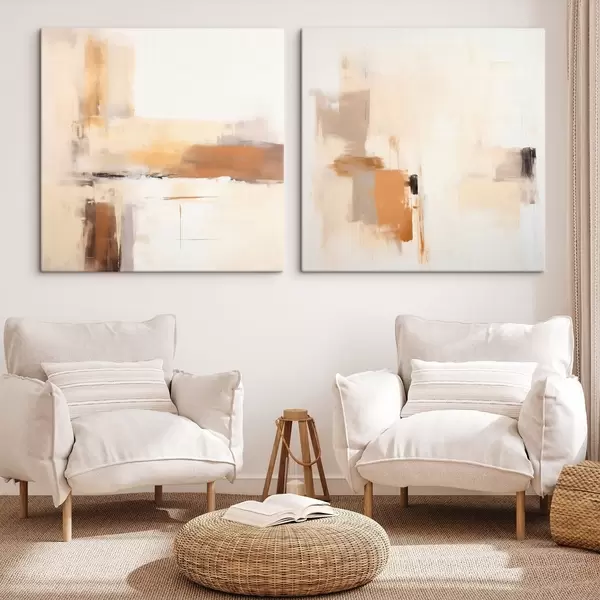 murales de pared Abstracción estilizada con tonos cálidos en formato díptico. m00988