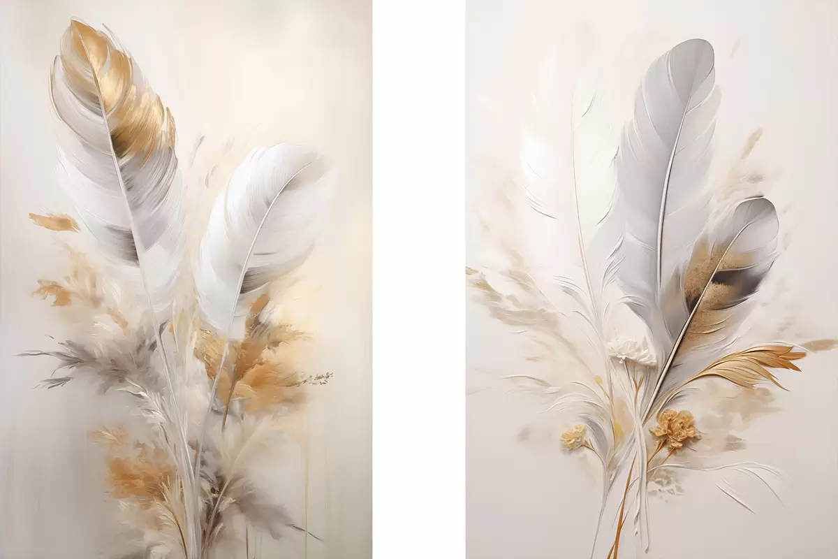Cuadros Plumas abstractas, rodeadas de plumas beige y marrones, suaves y delicadas, sobre un fondo beige claro. Nr m01016