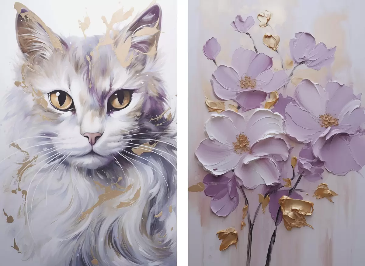 Hay tres tipos de material disponibles para pedidos: Lienzo Económico - material denso y duradero para impresión digital, idéntico al lienzo de pintor, superficie impermeable, reproducción realista de los detalles, material de grano medio. Lienzo Premium - la textura se asemeja a la de un lienzo de pintor (pequeños hilos entrelazados). Reproducción suave y detallada de la imagen sobre una superficie mate. Eco-Premium - tejido 100% algodón de alta calidad. Gracias a las fibras naturales de algodón, el material es duradero y resistente al desgaste. Excelente reproducción del color y el detalle.