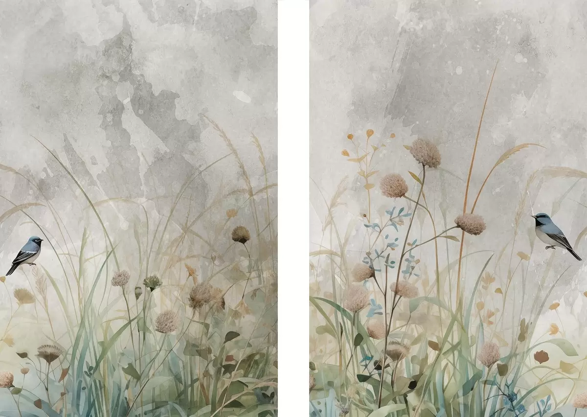 Cuadros Pájaros sobre un fondo de flores silvestres Nr m01068