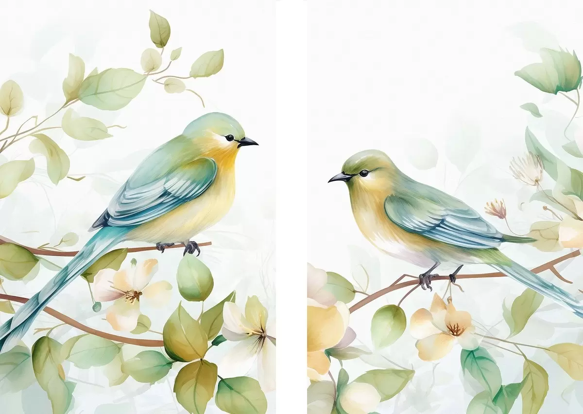 Cuadros Dos herrerillos en ramas de jazmín Nr m01069