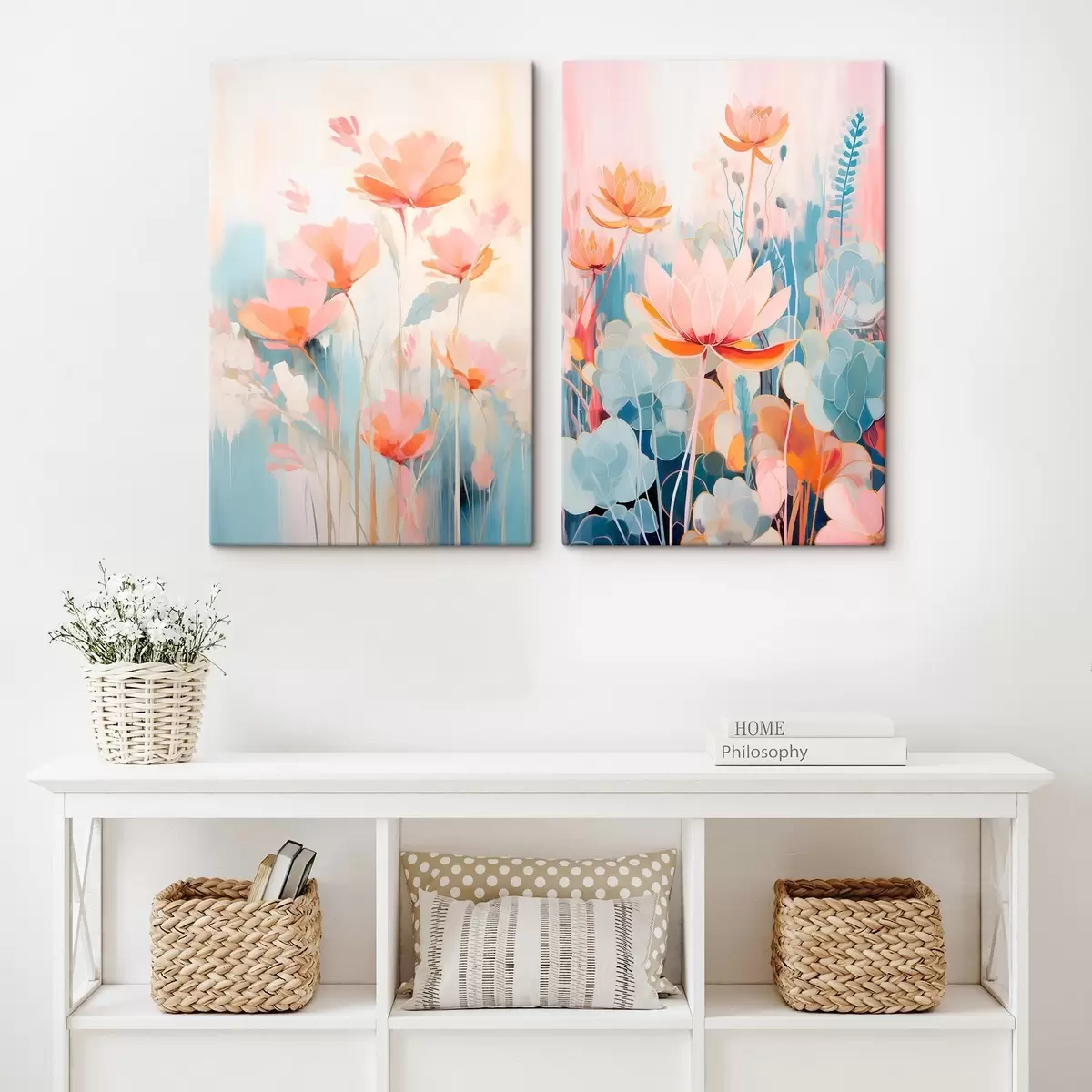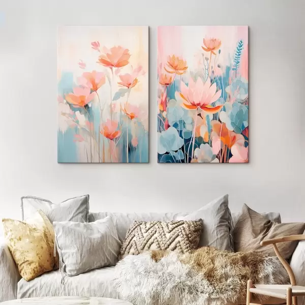 Cuadros Armonía acuarelada de flores en una paleta rosa y azul Nr m01084